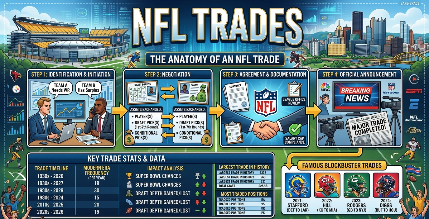 NFL trades are some of the most exciting moments in football. When teams swap players, the whole league pays attention. Fans hold their breath wondering if their favorite player will move to a new city. The trade market in the NFL moves fast and changes everything. One phone call can turn a struggling team into a contender. One deal can bring hope to a fan base that has waited years for success. Understanding how NFL trades work makes you a smarter fan. You will know why teams make certain moves. You will understand the value of draft picks and players. The best part is that trades happen all year round. During the offseason, teams rebuild. During the season, they push for championships. Every single trade tells a story. Some stories end with parades and trophies.